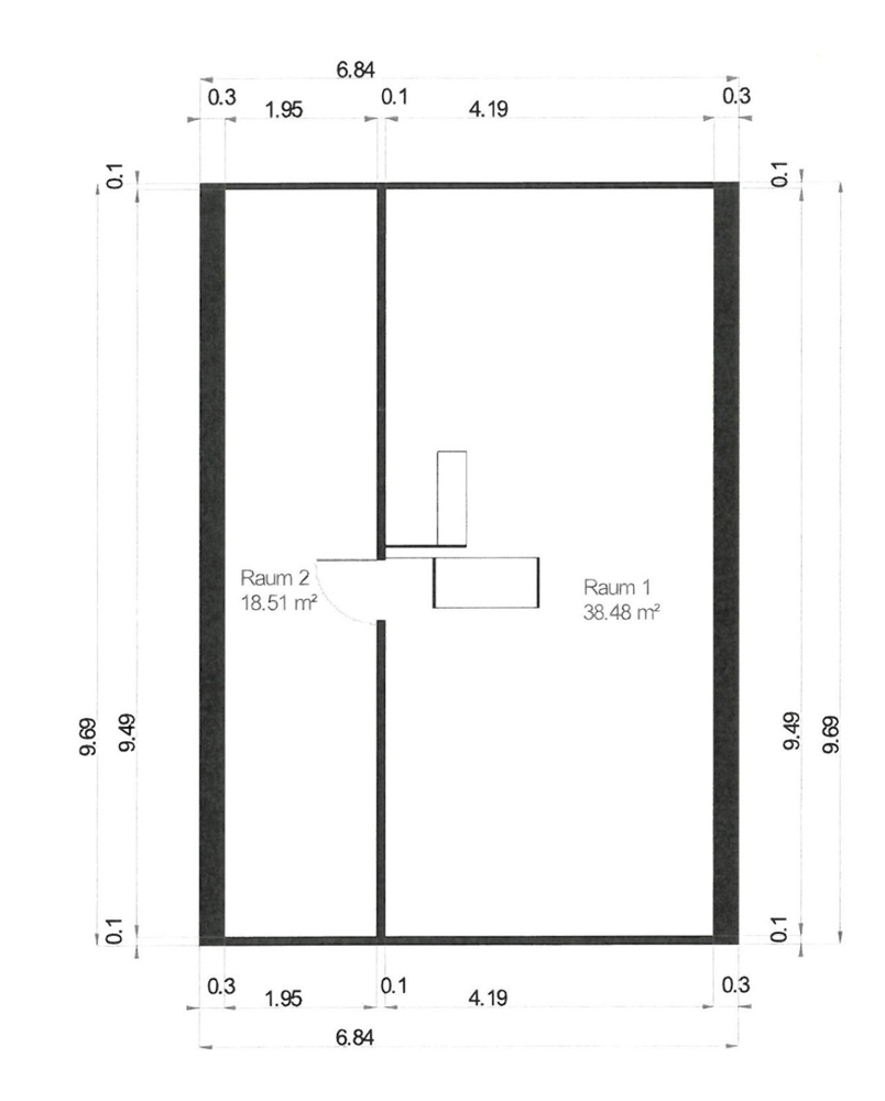 Die Aufteilung ist klassisch. Im Erdgeschoß befinden sich zwei Zimmer, Küche, Diele und Gäste-WC.