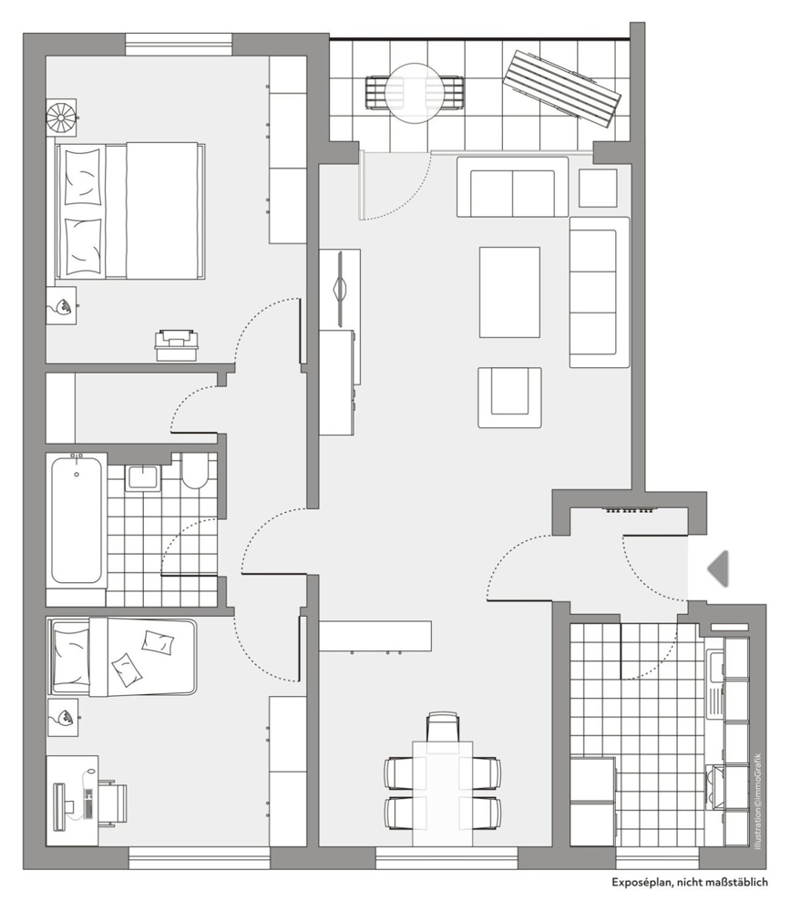 Diese Wohnung verfügt über einen guten Grundriss und weist einen großzügigen