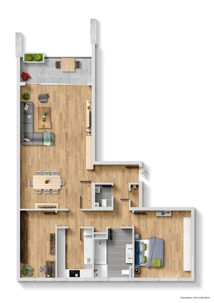 - auf Grund des Schnittes und der Größe max. 3-Personenhaushalte möglich (keine WG´S)