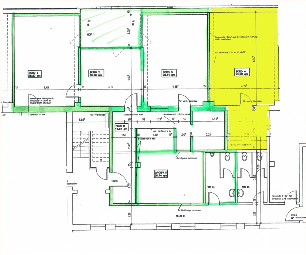 Optional kann ein weiter Bürobereich mit ca. 45 m² Fläche und Küchenzeile angemietet werden.