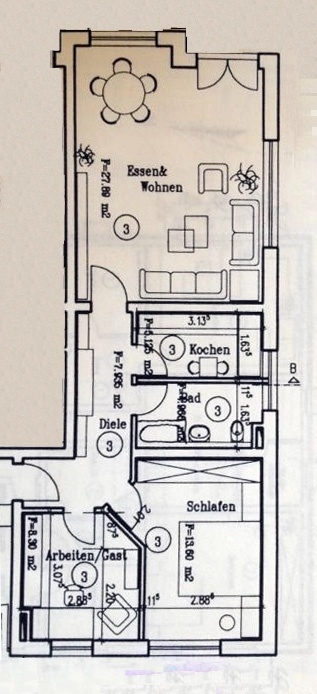 Die Wohnung wurde viele Jahre durch den gleichen Mieter bewohnt und befindet sich in einem sehr gepflegten Zustand.