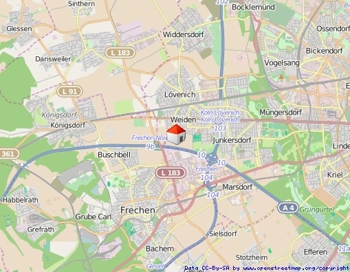 SonstigesDie Objektdarstellung in der Google-Karte ist nicht ganz korrekt. Das Objekt liegt in etwas weiter in der kleinen Stichstraße des Frechener Wegs.