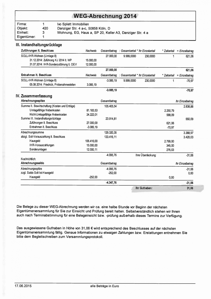 Der Gesamtkaufpreis beträgt 180.000 Euro (Wohnung inklusive TG-Stellplatz).