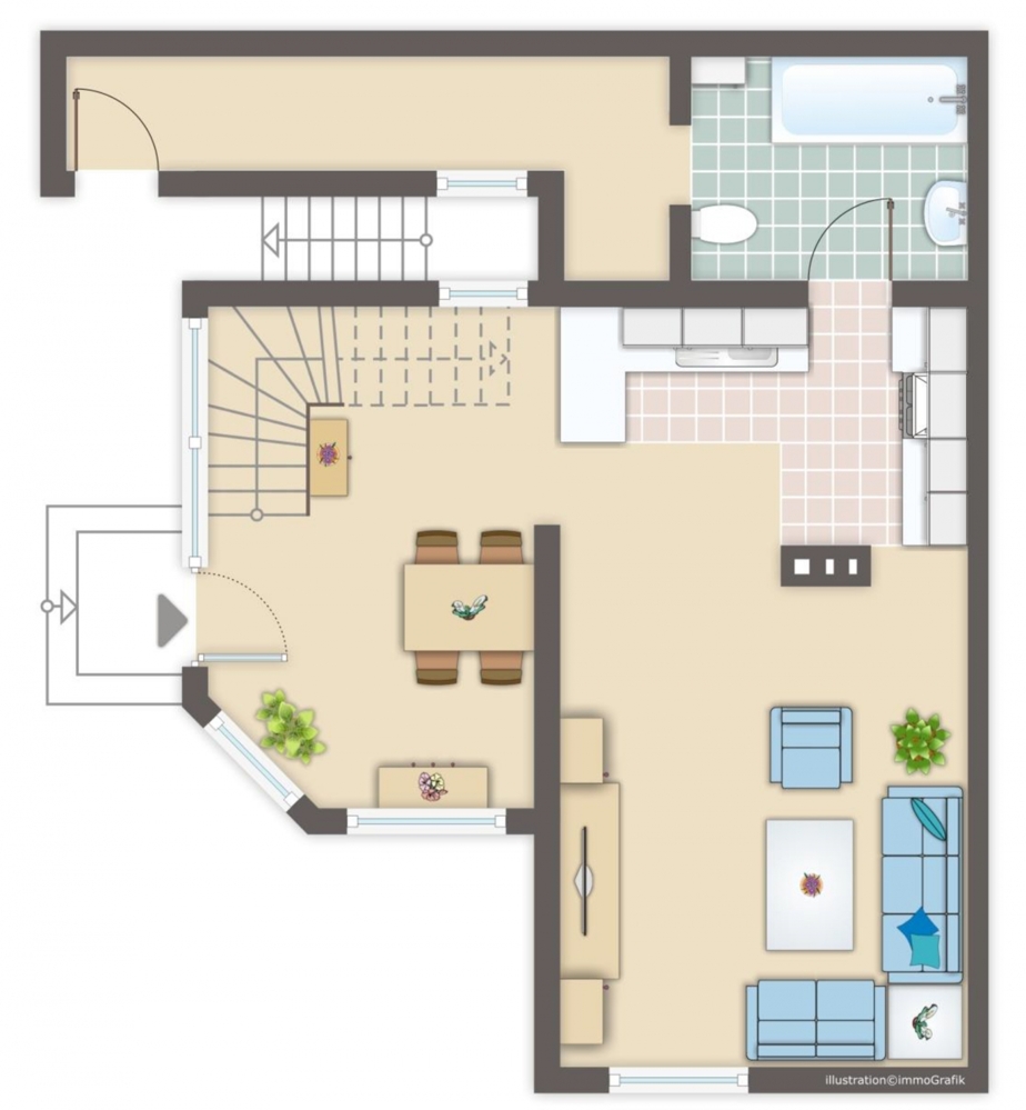 ObjektbeschreibungDiese teilunterkellerte Doppelhaushälfte in Köln-Mauenheim bietet einen besonderen Grundriss, der vor allem Flexibilität mit sich bringt! Im Kern eingehüllt von einer grundsoliden Bausubstanz von 1935, die im Laufe der Jahre stetig modernisiert und gepflegt wurde, befinden sich individuell gestaltbare Wohnetagen. Der seitliche Anbau von 1982, erweitert die Wohnfläche und hellt den Wohnbereich auf. Hier spürt man das wohlige und inspirierende Flair eines Stadthauses mit seinem liebevoll angelegtem Gartenbereich, auf dem sich ein wintergartenähnlicher Pavillion und ein weiterer geräumiger Anbau in Massivbauweise mit Sanitärausstattung befinden. Der überdachte und vom eigenen Brunnen mit Wasser versorgte Pool, rundet das Bild von einer kleinen Stadtoase ab. Im Erdgeschoss befindet sich die von Fenstern rund um erhellte Essecke, ein räumlich getrennter Wohnbereich, sowie die offene Küche, ein geräumiger Abstellraum und ein Badezimmer mit Wannenbad. Über die imposante Marmortreppe mit kunstschmiedeeisernem Geländer erreicht man die oberen beiden Etagen. Von der geräumigen Wohndiele in der ersten Etage, die derzeit unter anderem als lichtdurchfluteter Arbeitsraum genutzt wird, gelangt man in den Schlaf- und Ankleideraum. Das Dachgeschoss bietet Raum für jede erdenkliche Gestaltungsmöglichkeit.
