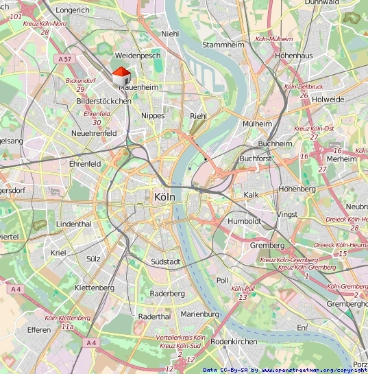 LagebeschreibungMauenheim ist der kleinste Stadtteil von Köln. Er liegt im linksrheinischen Stadtbezirk Nippes zwischen dem Nordfriedhof, der Neusser Straße und dem Mauenheimer Gürtel.