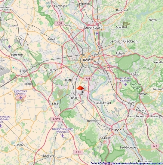 LagebeschreibungDer Stadtteil Meschenich liegt im Süden Kölns. Die Hofanlage in grüner Umgebung ist ruhig gelegen und bietet über die nahe gelegene Autobahnanbindung eine schnelle Verkehrsanbindung an die Kölner Innenstadt als auch andere umliegende Wirtschaftsräume.