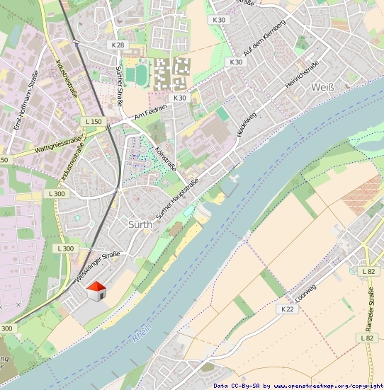LagebeschreibungDer Stadtteil Sürth liegt linksrheinisch, südwestlich zur Kölner Stadtmitte und gehört zum Stadtbezirk Rodenkirchen.