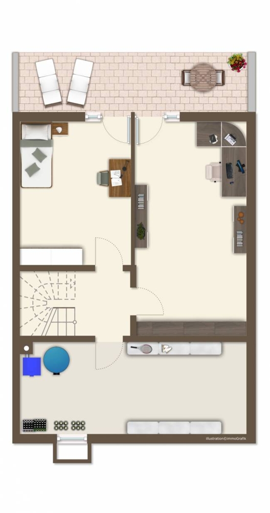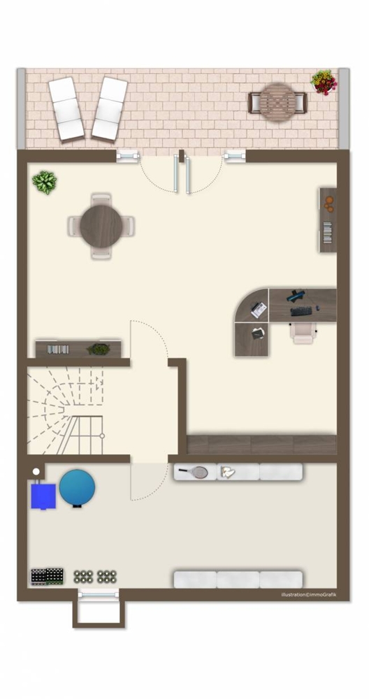 + großer Bürobereich mit Zugang Terrasse und zum Garten