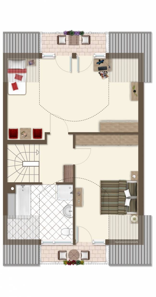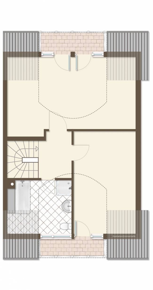 Die genaue Aufteilung sowie die Zimmergrößen entnehmen Sie bitte den Grundrissen und Flächenberechnungen. Andere Raumaufteilungen (z. B. 2 Kinderzimmer im OG, größeres Bad im OG, 2 Zimmer im UG, etc.) sind umsetzbar (bitte beqachten Sie hierzu die eingestellten "Grundrissvarianten").