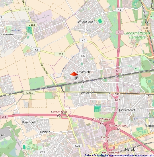 LagebeschreibungDer Ortsteil Lövenich liegt am westlichen Stadtrand und zählt zu den bevorzugten und begehrten Wohnlagen Kölns.