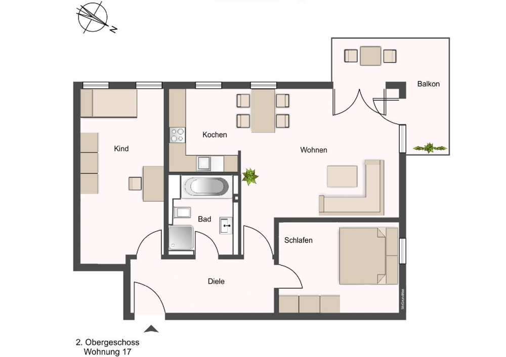 Diese Wohnung überzeugt durch Ihre großzügige Raumaufteilung auf ca. 71 m² Wohnfläche. Von Der Diele aus bietet sich Ihnen sogleich der Blick ins Wohnzimmer.