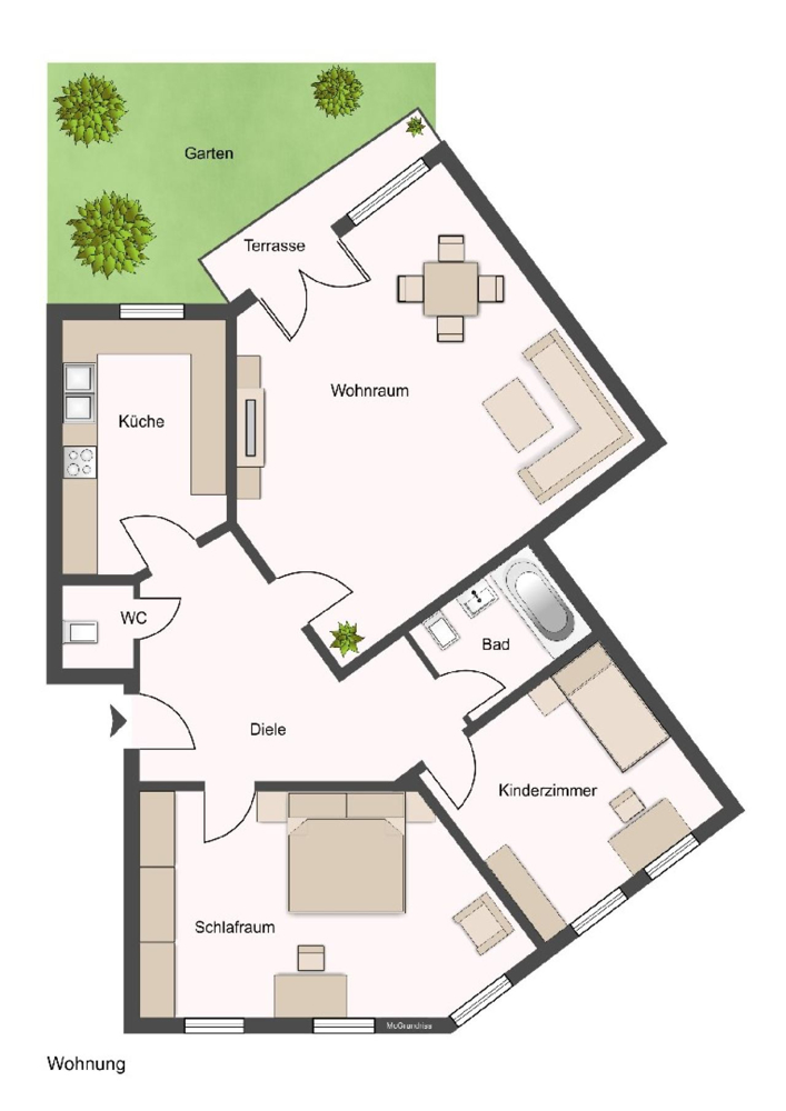 Liebe auf den ersten Blick. 3-Zimmer-Erdgeschosswohnung mit Terrasse und Garten