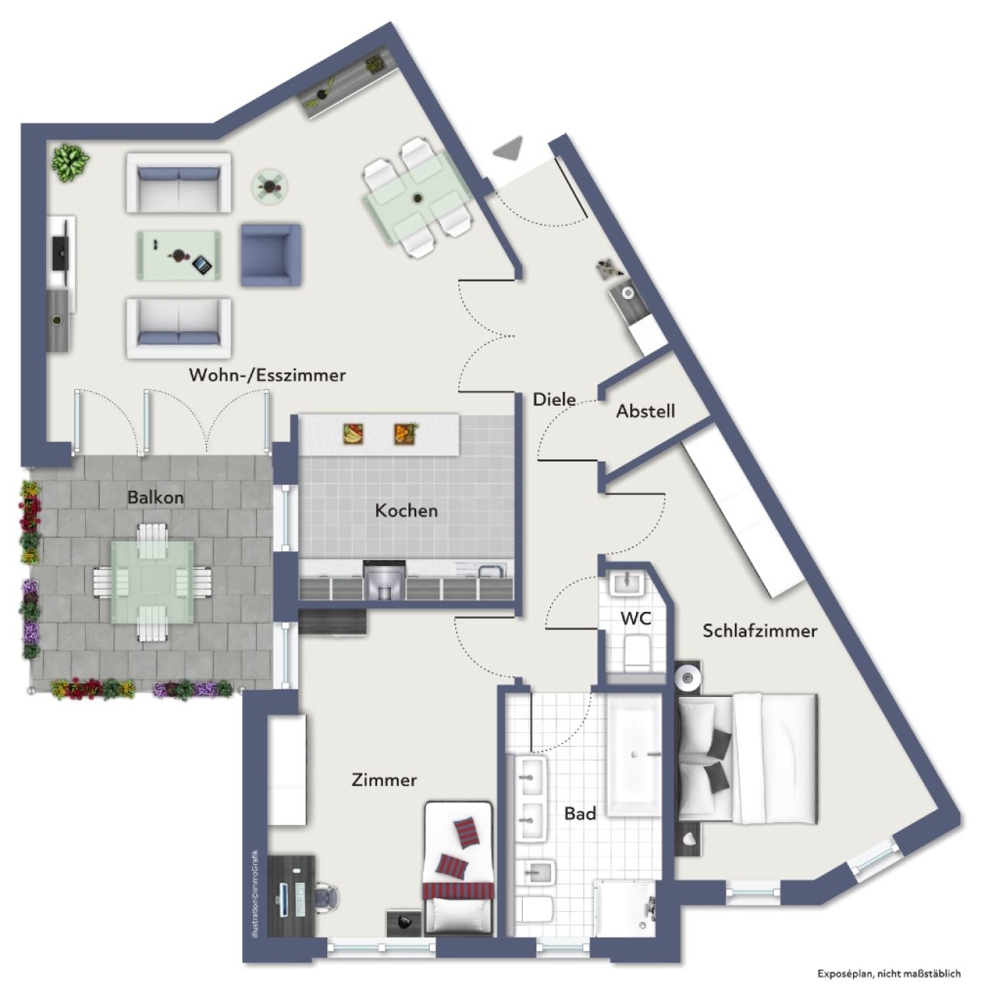 - sehr große Sonnenbalkon mit bereits vorhandener Markise und Außenzapfstelle