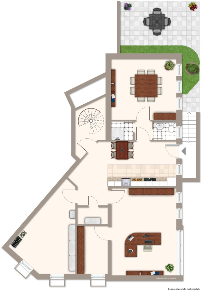 - Metall-Wendeltreppe, Lichthof als besonderes Element,
