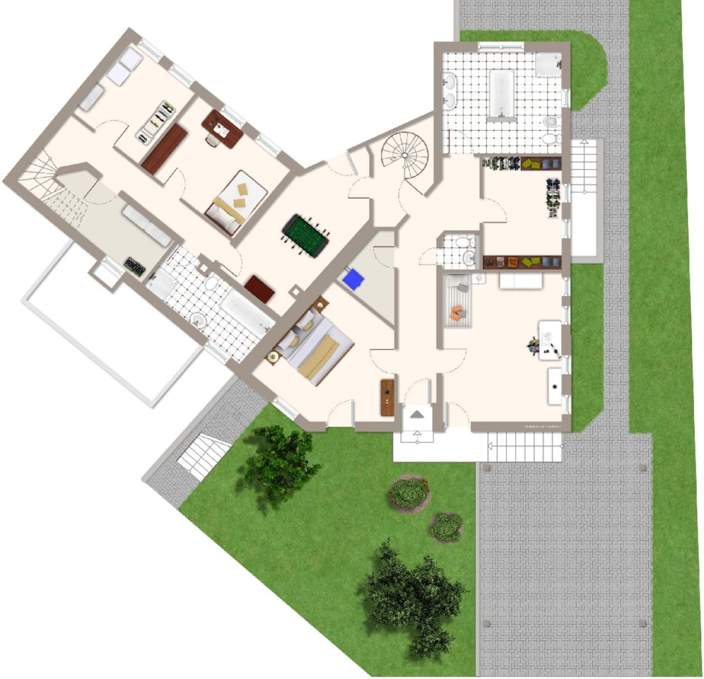- Masterbad als großes Wannen- und Duschbad, freistehende Badewanne; 2 weitere Bäder,