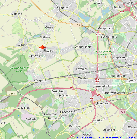 LagebeschreibungDas Objekt liegt in Pulheim-Brauweiler in ruhiger Grünlage unweit des Ortskerns. Einrichtungen des täglichen Bedarfs sind weitestgehend fußläufig erreichbar. Die Anbindung an das öffentliche Verkehrsnetz ist gut. Im Zentrum von Pulheim sowie im Nachbarort Lövenich gibt es eine DB-Anbindung nach Köln.